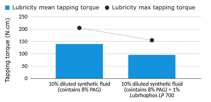 Addition of only 1% of Lubrhophos LP 700 significantly improves lubricity